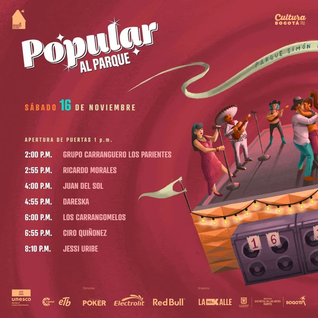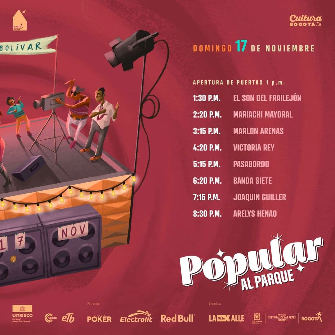 El Instituto Distrital de las Artes (Idartes) presenta el evento bajo el lema #BogotáEsPopular, celebrando la riqueza musical y el talento nacional.