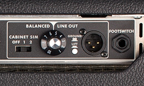 - Salida de línea XLR balanceada con simulaciones de distintos chasis con respuesta de impulso (IR), control de nivel e interruptor de tierra.
