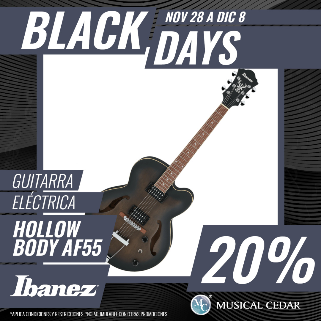 Del 28 de noviembre al 08 de diciembre podrás encontrar descuentos de hasta el 60%* en productos seleccionados de Musical Cedar.