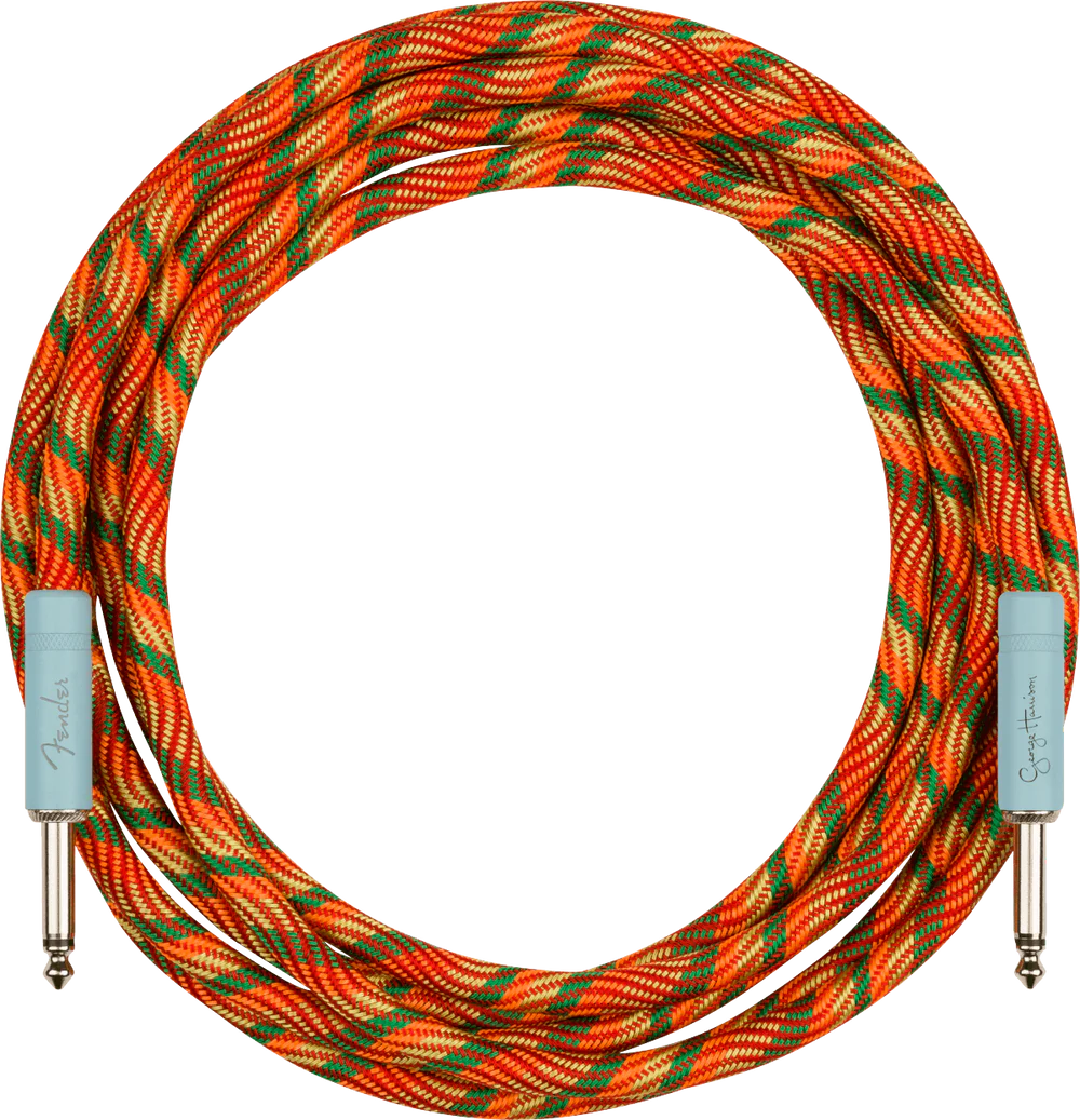 George tocó una variedad de guitarras icónicas a lo largo de su carrera, pero la más distintiva visualmente fue su Sonic Blue Stratocaster de 1961 pintada a mano en psicodélicos Day-Glo naranja, rojo y amarillo, cariñosamente llamada «Rocky».