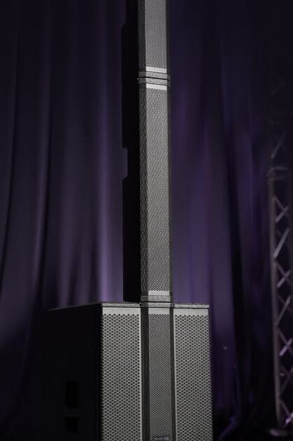 Cada parte superior cuenta con seis parlantes de rango completo de 3.25″ (1” VC) diseñados para garantizar una dispersión óptima del sonido con 120° de cobertura horizontal y dos subwoofers de 12 pulgadas.