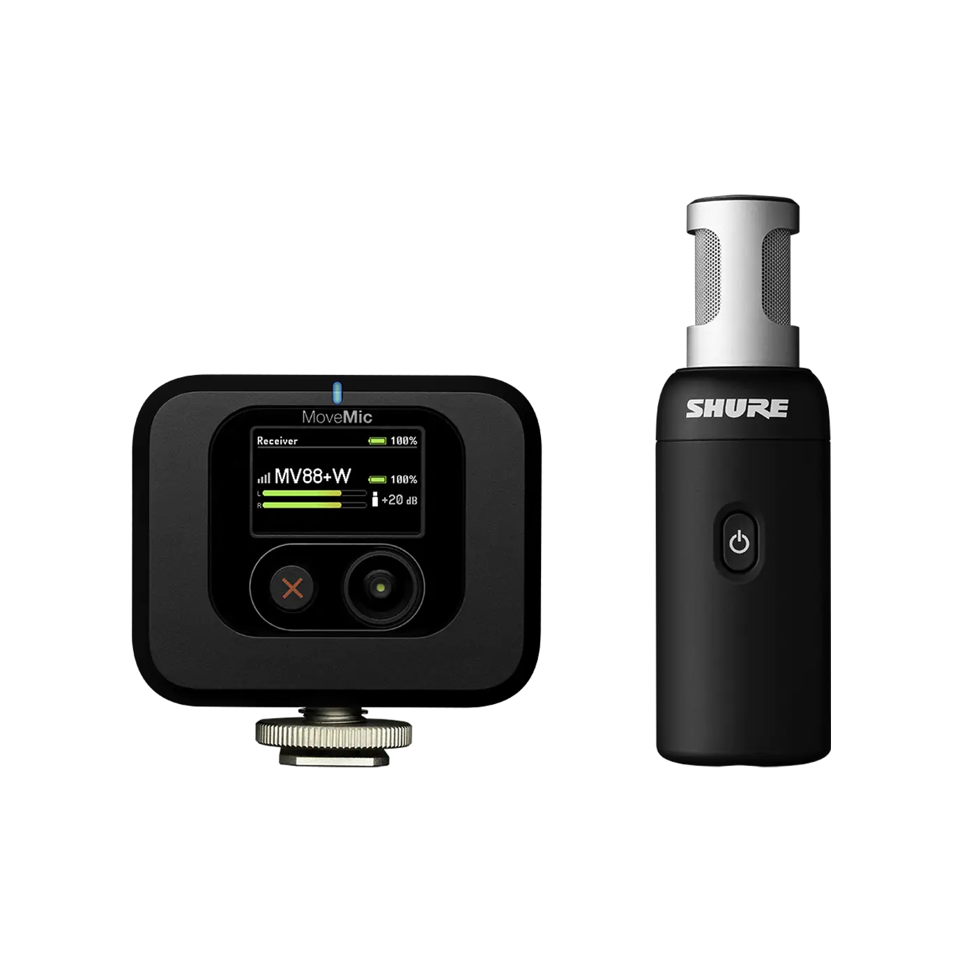 Combinando la tecnología Shure de los reconocidos modelos MV88+ y MoveMic, el MoveMic 88+ de bolsillo ofrece audio inalámbrico profesional en un paquete portátil.