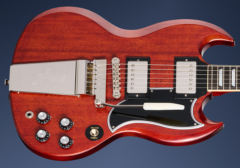 La guitarra eléctrica Epiphone 1964 SG Standard con Maestro Vibrola es una reedición inspirada en Gibson Custom de uno de los modelos SG vintage más queridos.