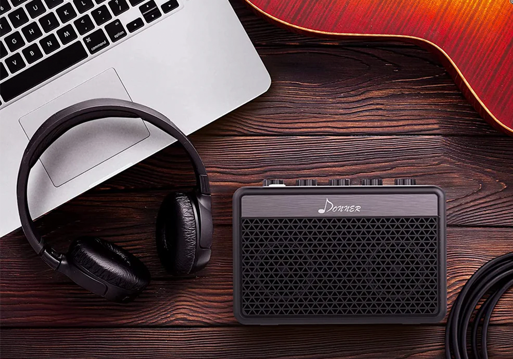El miniamplificador de guitarra Donner DA-10 destaca por su diseño compacto, versatilidad de sonido y su batería recargable de larga duración.