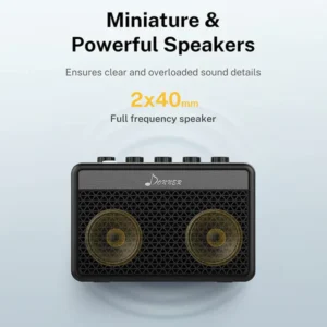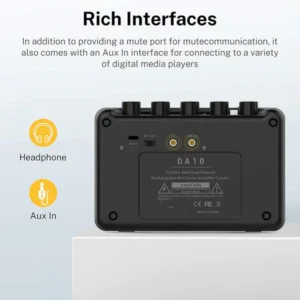 El miniamplificador de guitarra Donner DA-10 destaca por su diseño compacto, versatilidad de sonido y su batería recargable de larga duración.