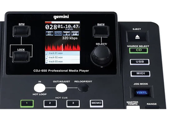 El reproductor multimedia CDJ-650 de Gemini te ofrece control total sobre tu set de DJ, ya sea que uses CD, memorias USB o tu ordenador con control MIDI.