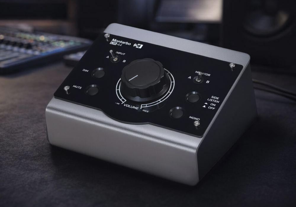 El controlador Montarbo de monitores CR 44 te permite la gestión de dos pares de monitores, para escucha de referencia profesional y de estudio doméstico.