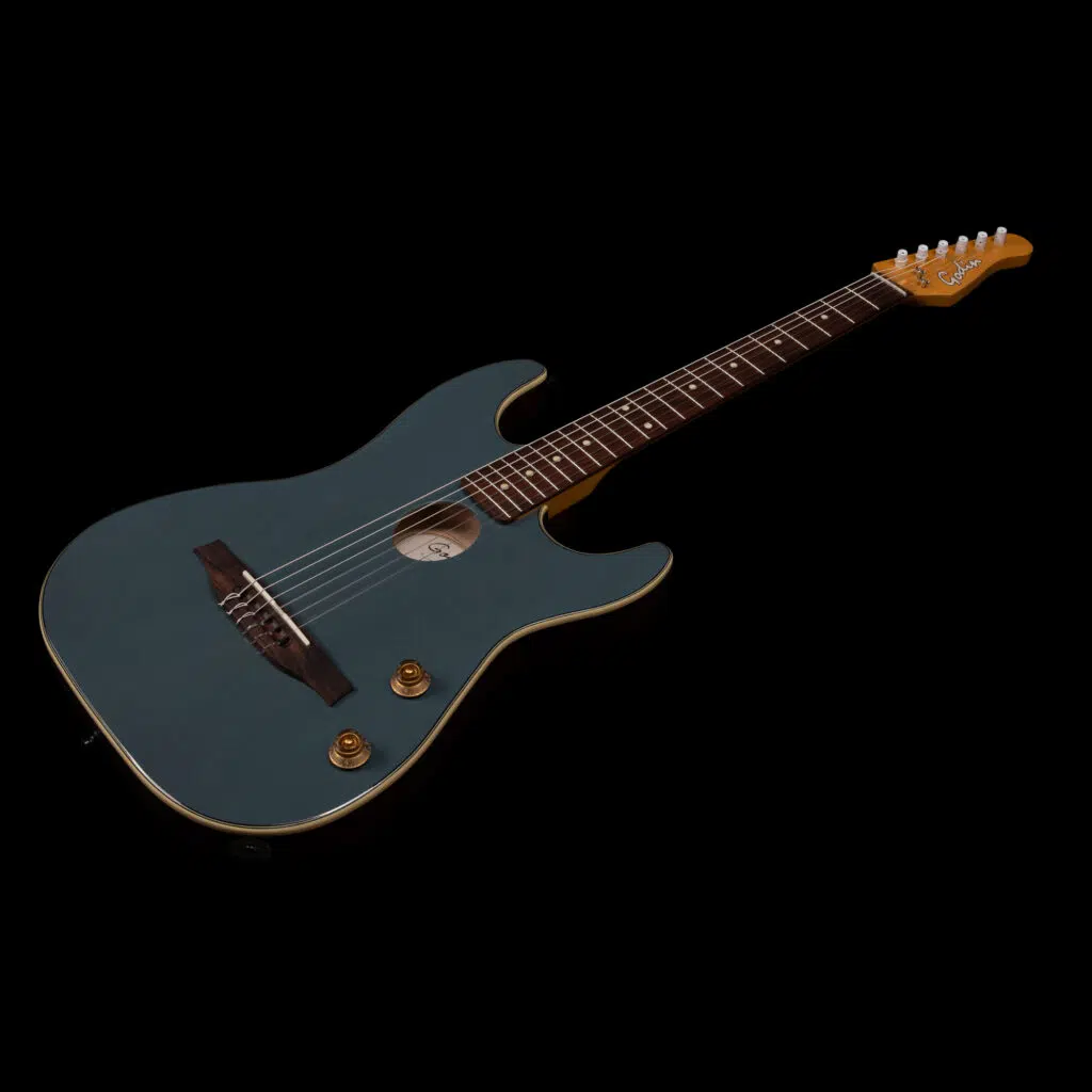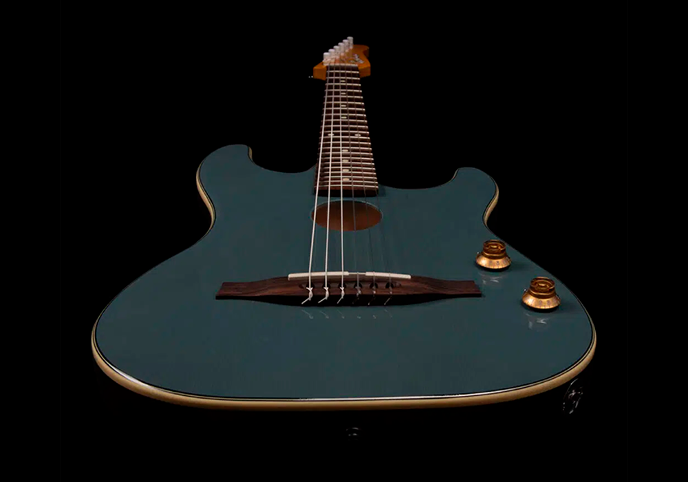 - El mástil de arce duro cuenta con un diapasón de palisandro con un ancho de cejuela de 1,65 pulgadas, lo que proporciona la comodidad de una guitarra eléctrica y facilita las transiciones en el escenario.